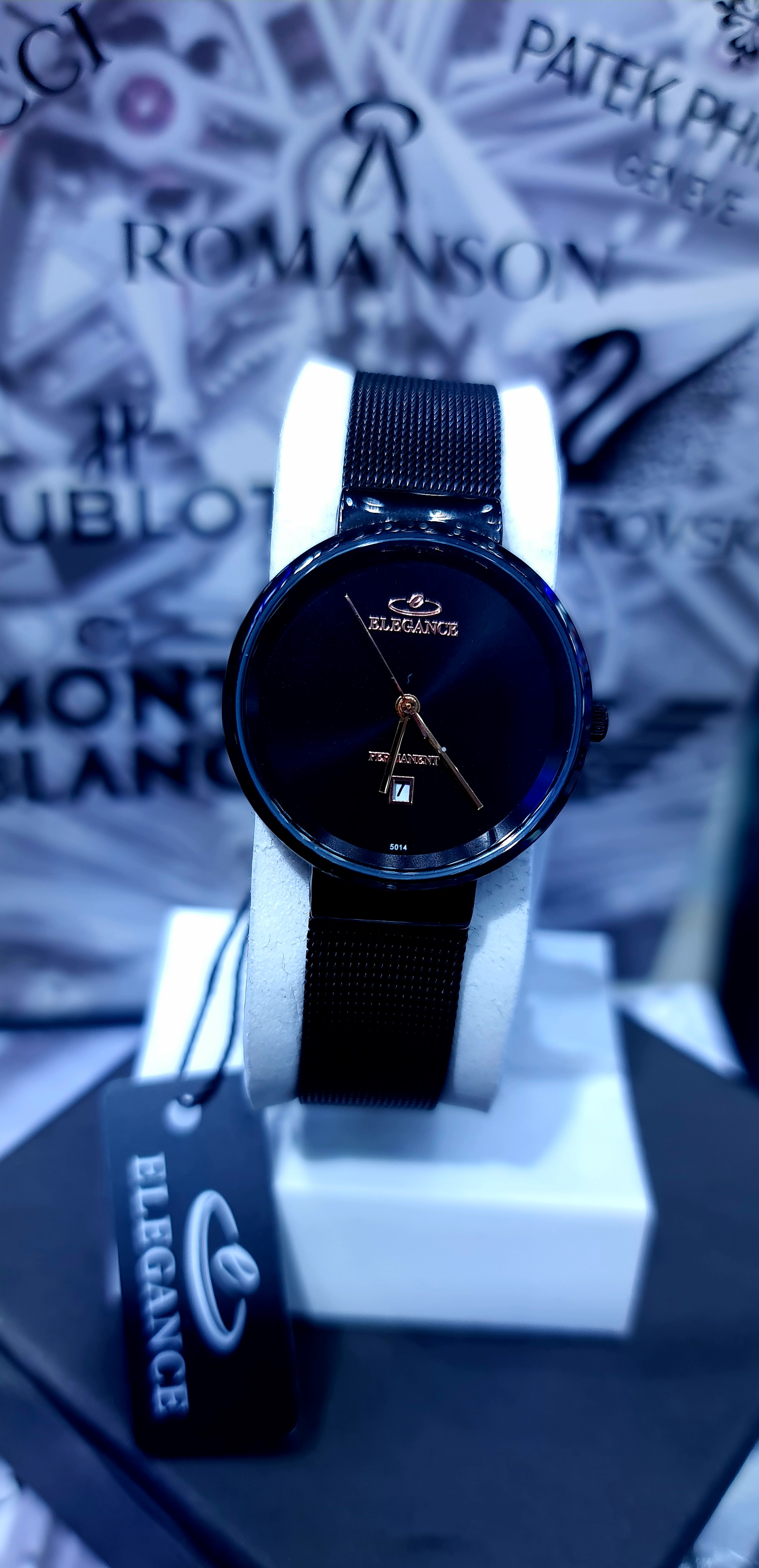 ساعت زنانه برند الگانس، تک موتوره دارای تقویم روز شمار بند حصیری، رنگ مشکی، بسیار زیبا و شیک، ارسال رایگان به سراسر ایران