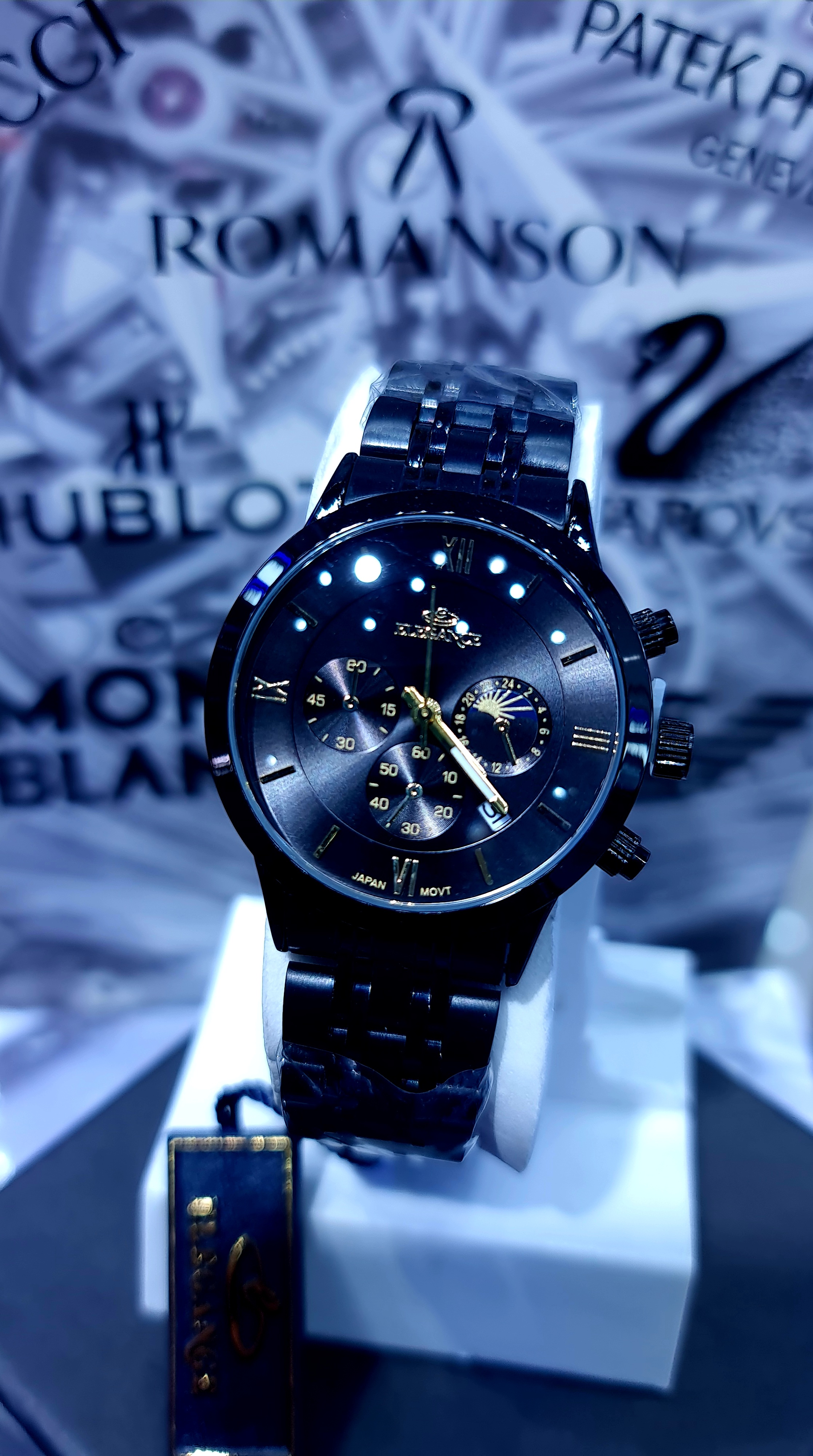 برند الگانس مردانه، سه موتوره، تمام استیل، دارای تقویم روز شمار،رنگ طلایی