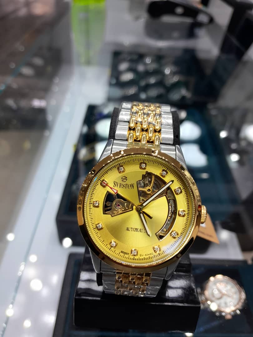 برند سویستون مردانه، اورجینال، تمام اتوماتیک رنگ طلایی رنگ صفحه مشکی، مناسب افراد خاص پسند