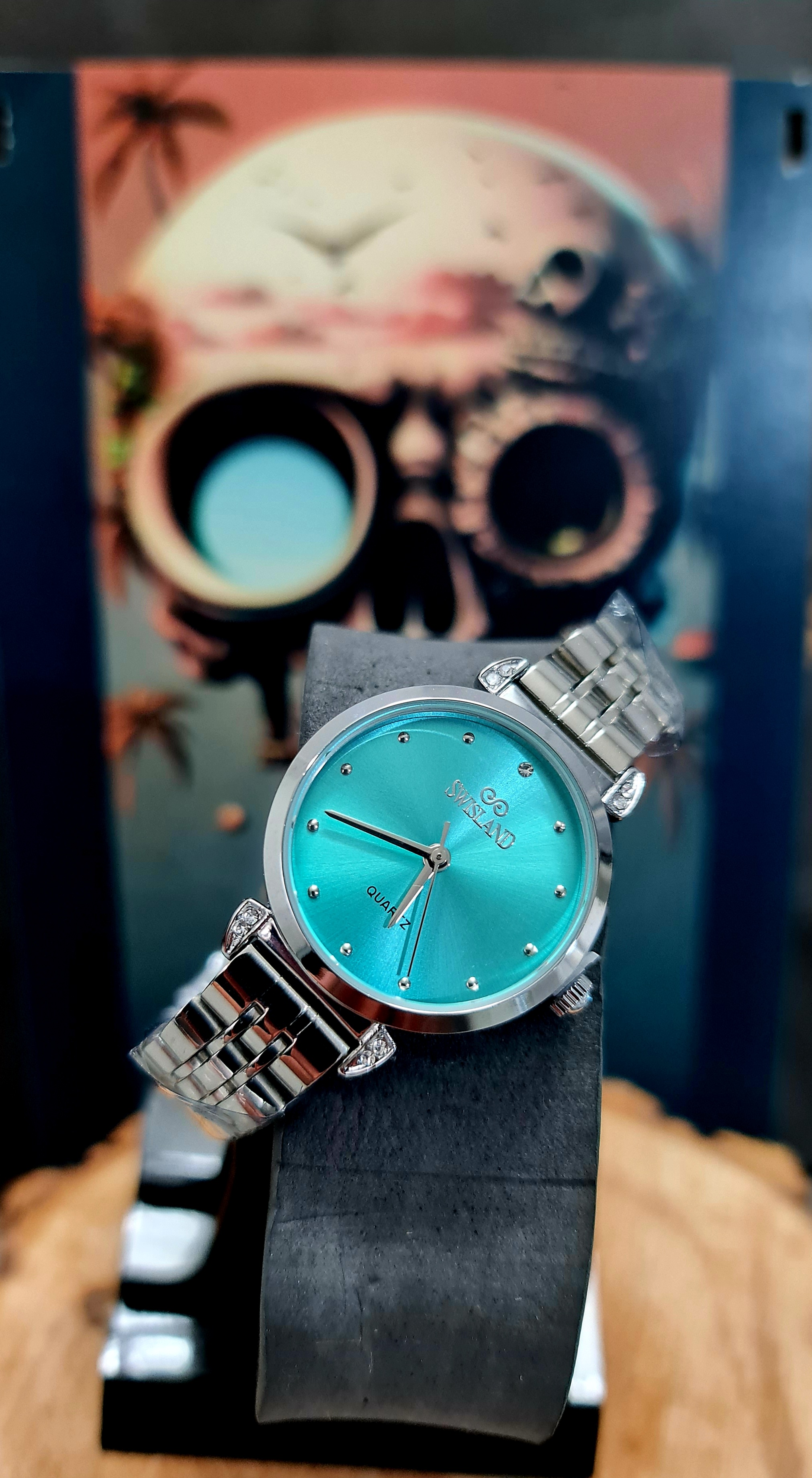 ساعت زنانه برند سویس لند تمام استیل فریم دور نگین رنگ صفحه سبز زمردی بسیار زیبا و شیک فوق العاده خاص، ارسال رایگان به سراسر ایران