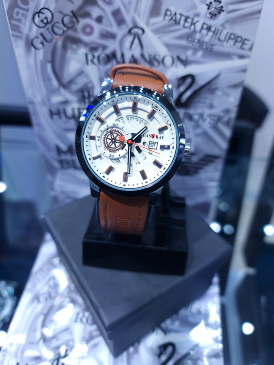 ساعت مردانه کاسری دارای تقویم روز شمار بند چرمی، ارسال رایگان به سراسر ایران