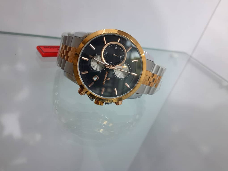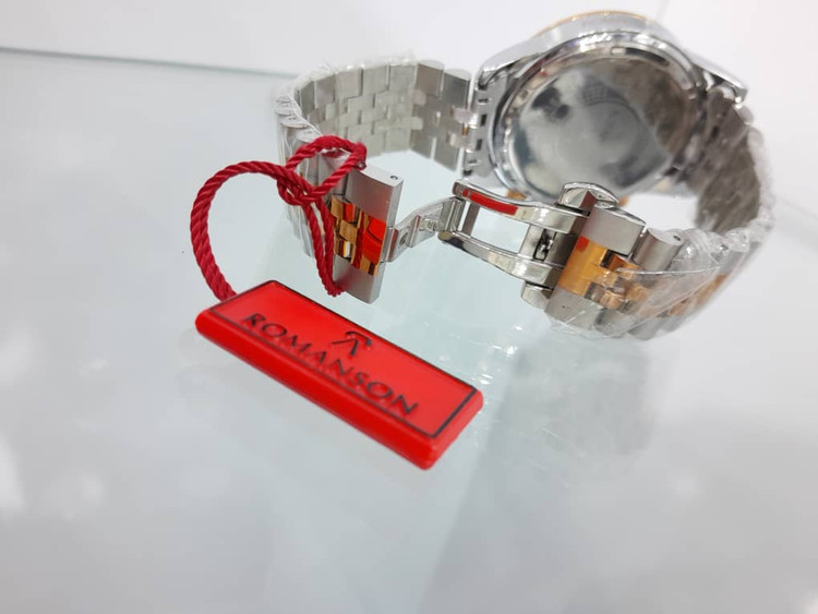 برند رمانسون مردانه، سه موتوره، موتور بای کرنو گراف، صفرکن، دارای تقویم روز شمار،استیل ۳۱۶،بند استیل، رنگ بند سفید رزگلد، فریم رزگلد، رنگ صفحه سفید رزگلد، بسیار شیک و زیبا