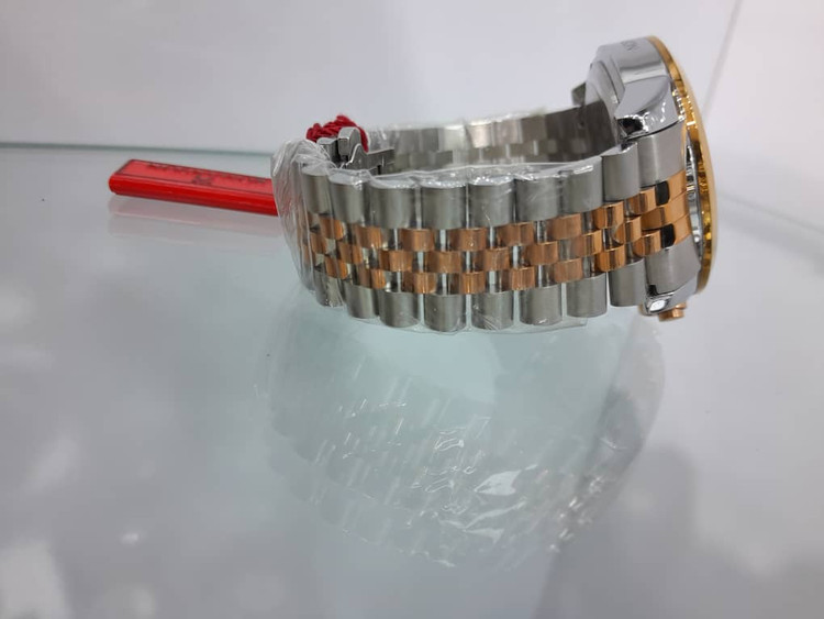 برند رمانسون مردانه، سه موتوره، موتور بای ژاپن، کرنو گراف، صفر کن، دارای تقویم روز شمار، یکسال گارانتی موتور، جنس: استیل۳۱۶،رنگ بند استیل رزگلد، فریم رزگلد، رنگ صفحه سفید رزگلد، منبع تغذیه: باطری، بسیار شیک و خاص